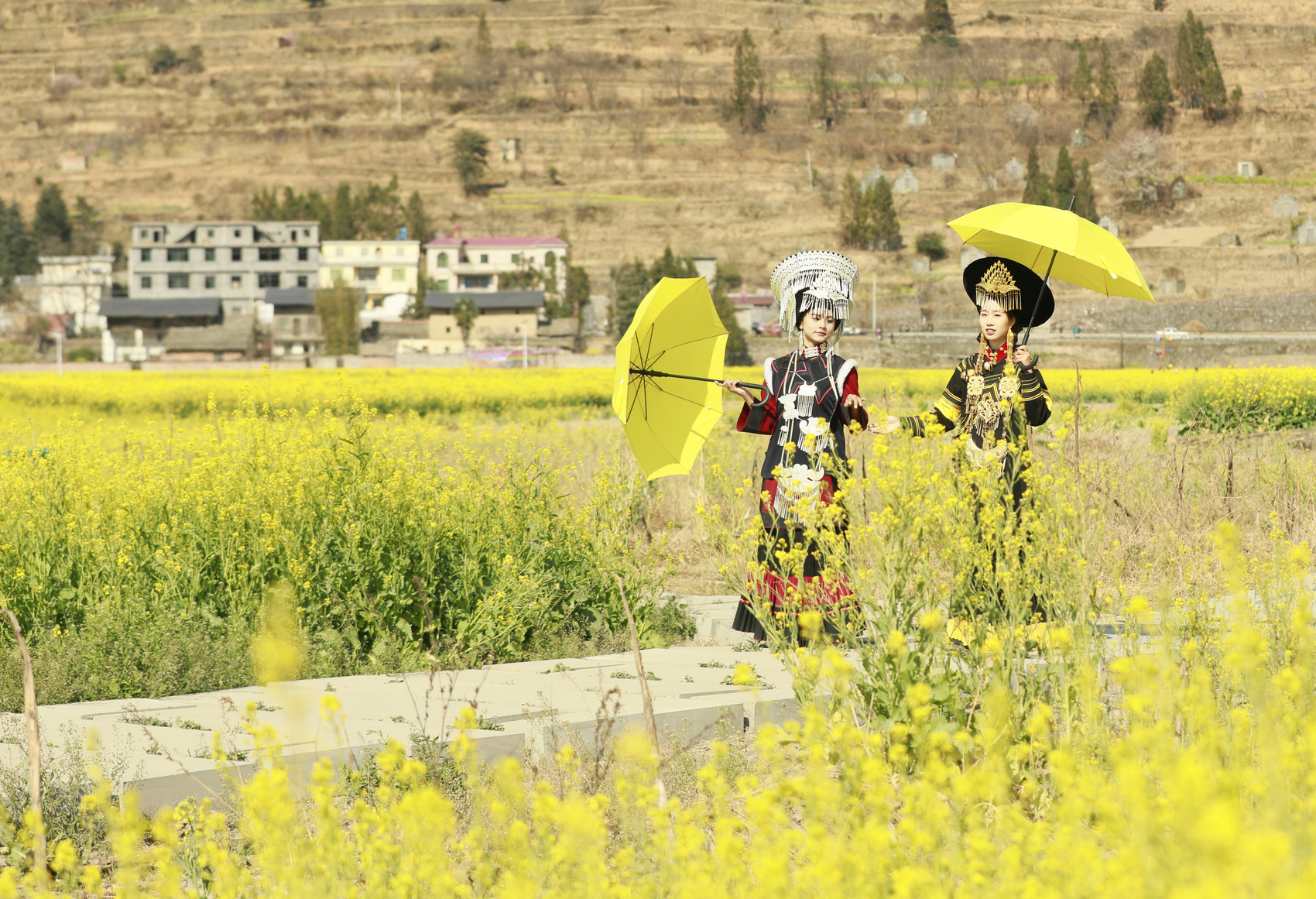 正是油菜花开的季节,越西县大瑞镇的田间地头满目金黄。