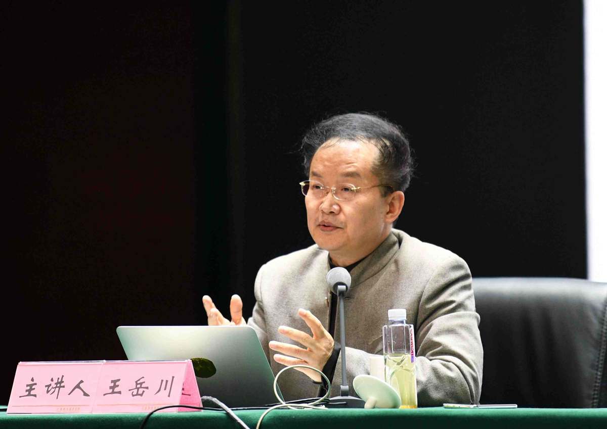 王岳川以“美育·国学·书法 ”为题,从“美育——审美教育的历史背景”“国学中国文化地图”“书法与文字:国学本体关系”“书法的美学标准”“书法与国学文化深层结构”“书法收藏:为什么家里要挂书法”六个方面,围绕中国传统文化、国学、中国书法及书法精神,为听众讲解了“回归经典、走进魏晋、守正创新、正大气象”的内涵。