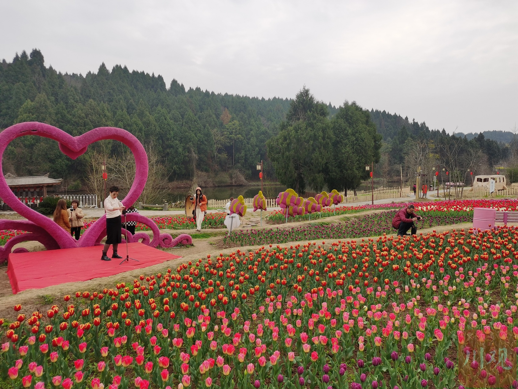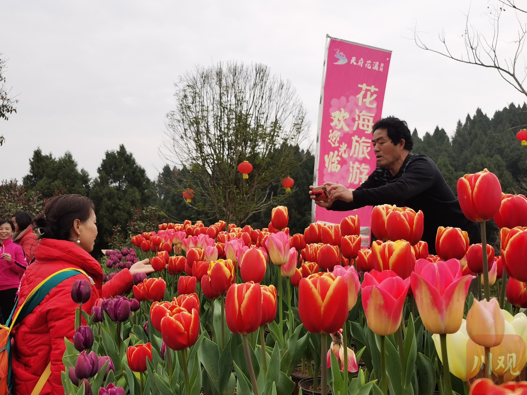 3月6日,雁江区举行第九届赏花节季采风活动,组织网络大v和媒体代表走进天府花溪景区,赏五彩郁金香花海。