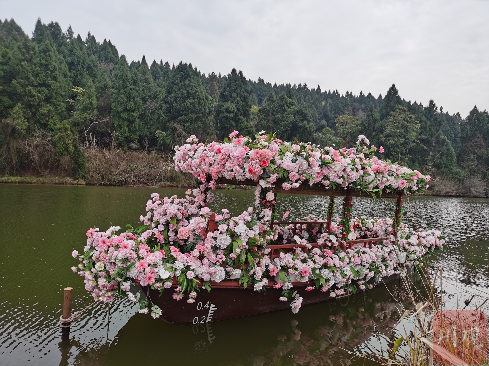 停靠在岸边的网红花船