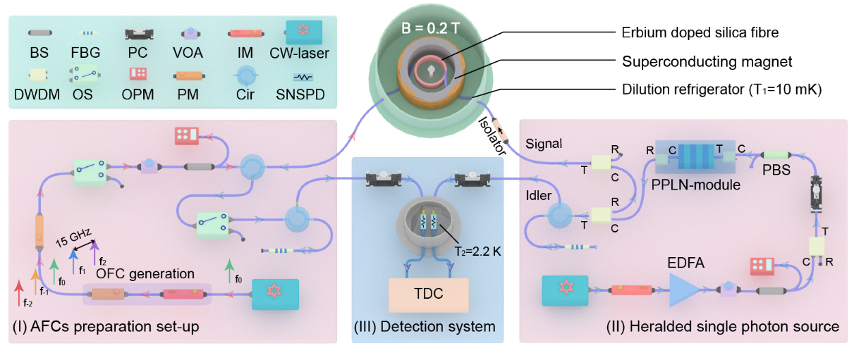 该成果由电子科技大学/天府绛溪实验室研究组与中国科学院上海微系统与信息技术研究所团队共同合作完成,研究工作得到国家科技创新2030重大项目、国家重点研发计划青年科学家项目、国家自然科学基金、四川省重点研发计划等大力支持。近期,以“Quantum storage of 1650 modes of single photons at telecom wavelength”为题,发表在国际著名学术期刊《NPJ Quantum Information》上。