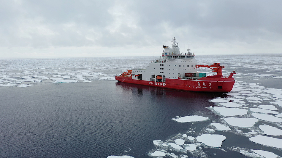 “雪龙2”号开展作业。 新华社 发(陈栋彬 摄)