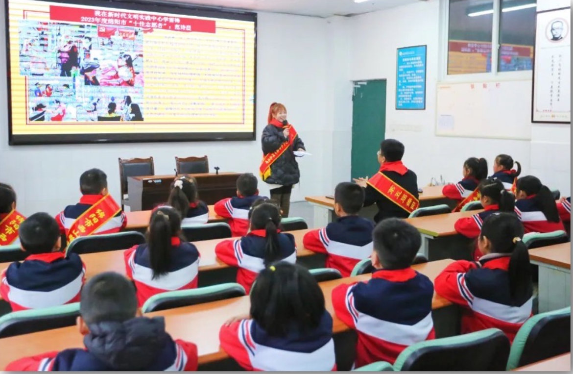 类似的场景还发生在绵阳市西山路小学。教室里,“绵阳市道德模范”陈冬冬正给同学们讲述“学雷锋纪念日”的由来;另一边,“2023年度绵阳市十佳志愿者”范诗晨也为同学们讲述了平凡老人刘都泽的事迹,分享了母亲、自己和孩子三代人的故事。
