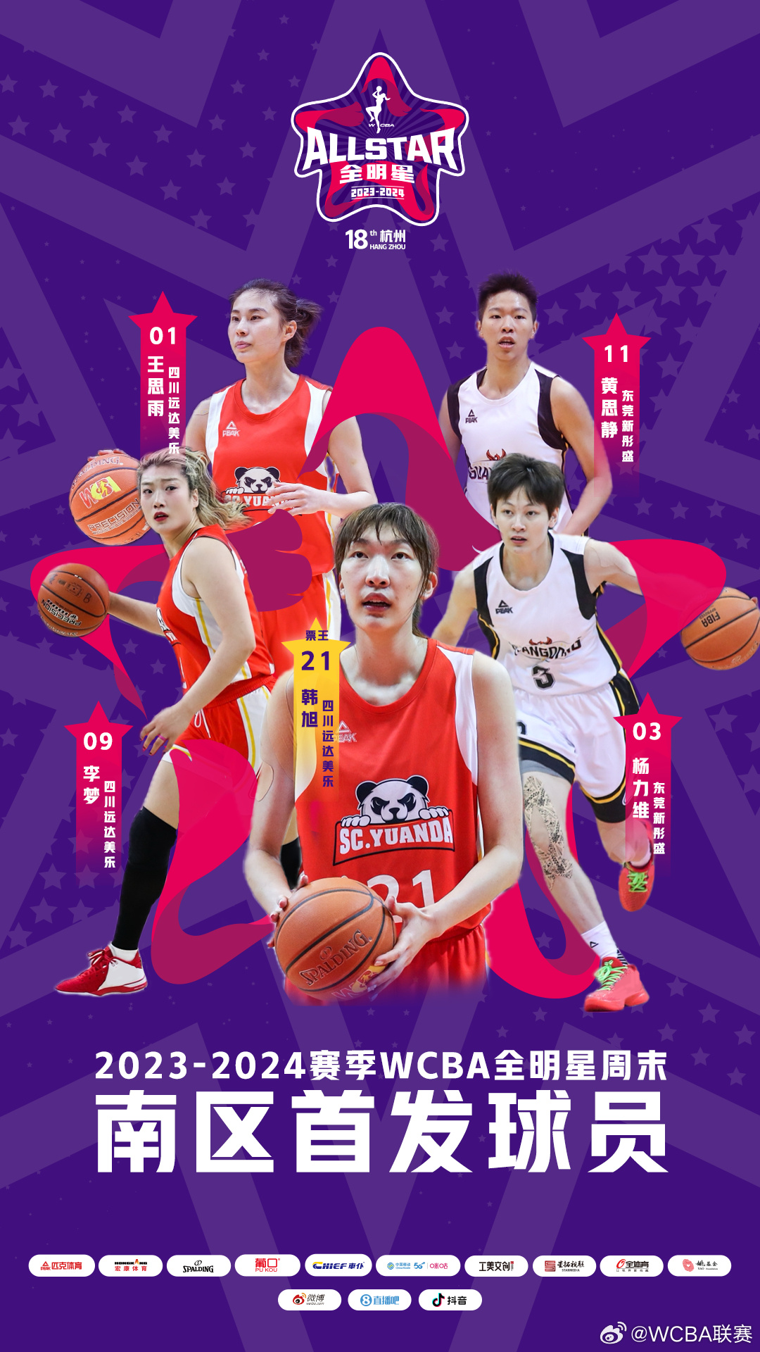 南区首发球员海报。来自WCBA官方微博