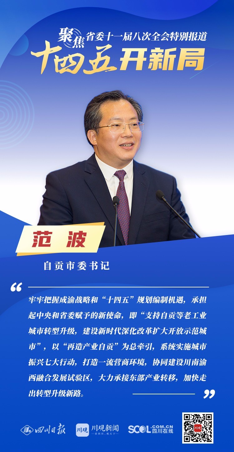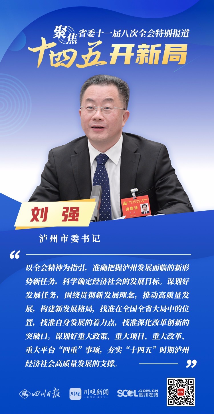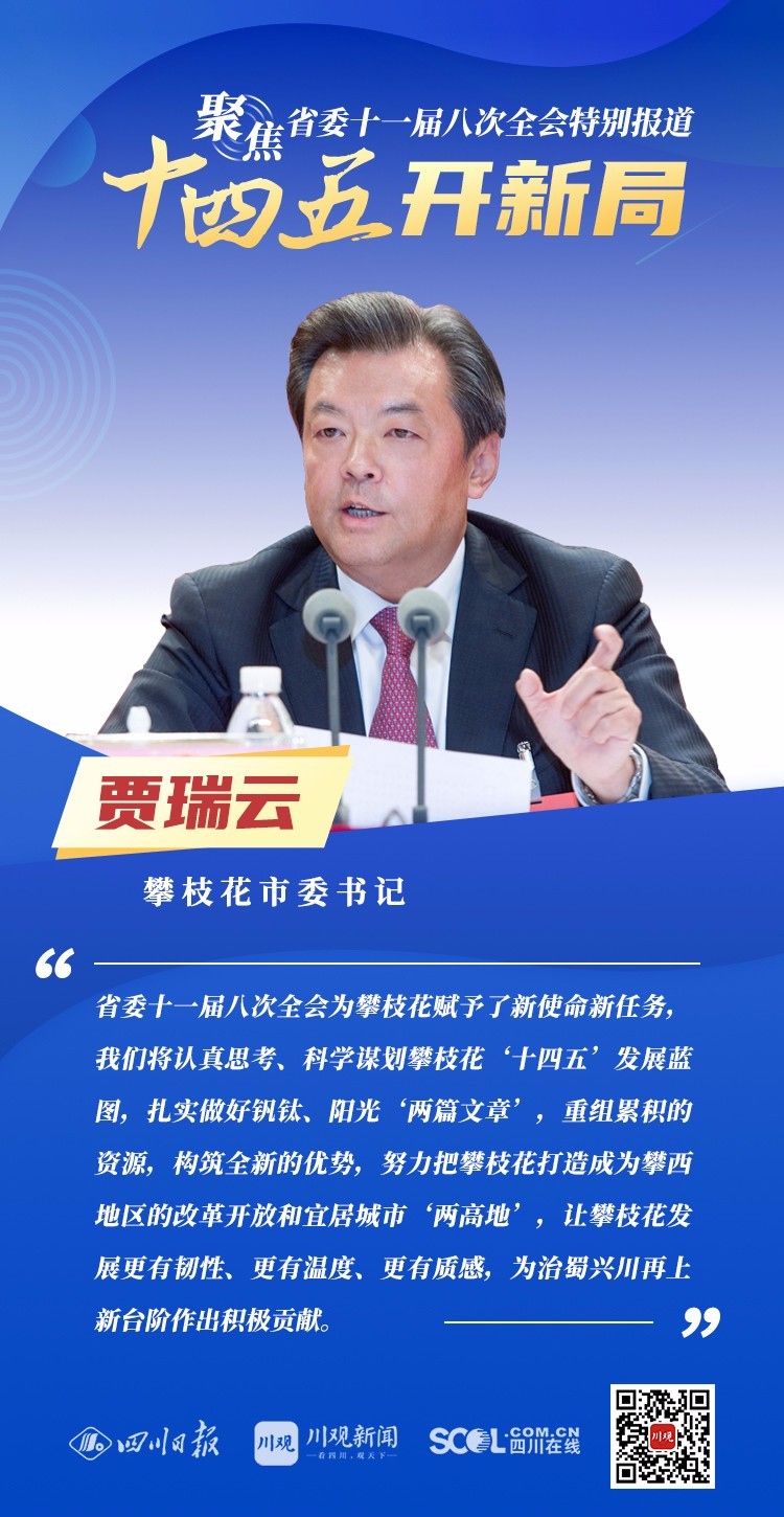 12月3日,中共四川省委十一届八次全会在成都开幕,全会将深入学习贯彻党的十九届五中全会精神,审议《中共四川省委关于制定四川省国民经济和社会发展第十四个五年规划和二〇三五年远景目标的建议(讨论稿)》,为未来5年乃至更长时期四川发展谋划新蓝图 。