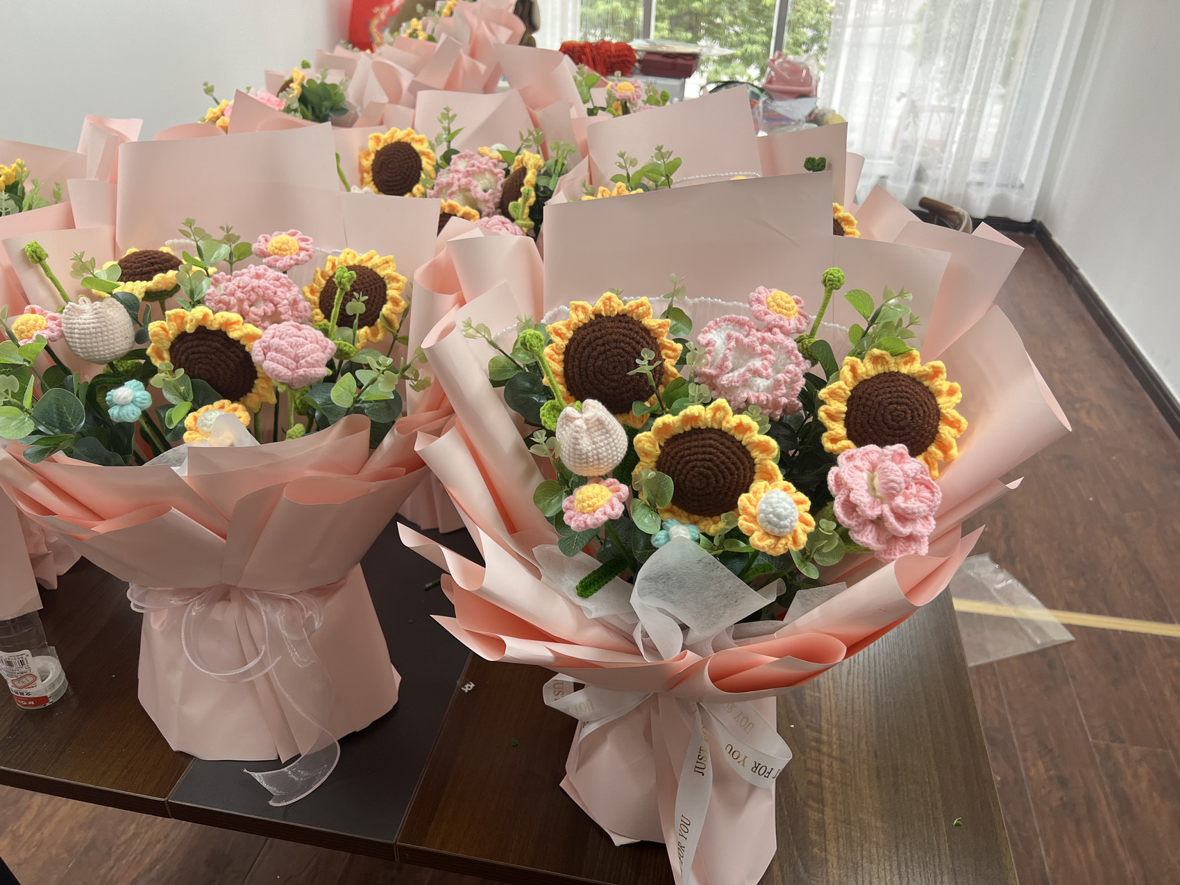 “最近都在赶制妇女节的订单。像这批线钩花束就要在3月8日前送出,共有30多单,都是巴中本地订购的。”巾帼工坊主管李清明告诉记者,线钩完一束花大概需要一天时间,目前生产进度已达70%,应该能按期交付。