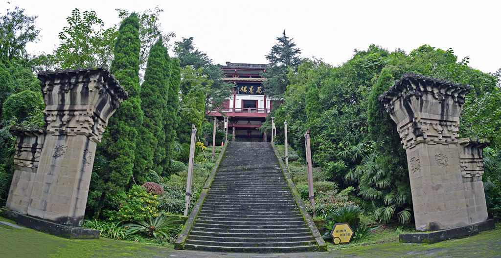 人生无非成住坏空,书香终究万古流芳。2020年8月,正立秋时节,犹带着暑热的风从南充嘉陵江水面犁过,吹得顺庆区西山之上翠竹纷摇,满地斑驳碎影。嘶鸣不息的蝉声中,沿褐色石阶缓步向上,楼门上方,阳光将赵朴初题写的“万卷楼”三个大字映得熠熠生辉。跨进门来,只见高约五米的陈寿塑像正屈膝而坐于庭院中央,其峨冠博带,正衣袖飘飘。再一细看,经历了一千七百二十三年的淘洗,已然从血肉之身转化为了青铜之躯的陈寿将瘦长的双手从宽袖中伸出,紧紧抱住怀中的数筒竹简,他眉角上扬,眼眺远方,清癯的面容上笑容微露,仿佛刚完成人生的一件壮举,正准备卸下担子,奔赴一次从容的远行。