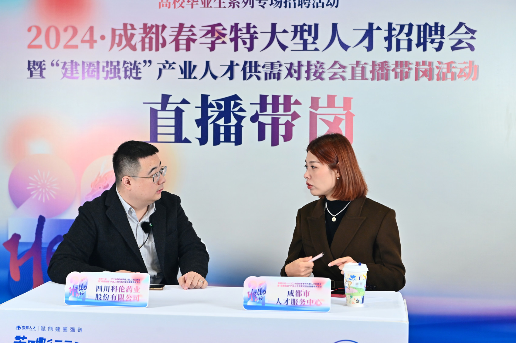 招聘会现场还同步开展直播带岗活动,通过线上“企业‘职’通车”,邀请四川科伦药业、四川英杰电气、成都鱼泡科技、成都讯捷通讯等4家单位在直播间介绍岗位需求、待遇水平等情况,回答线上求职者关切的问题,共吸引6.4万人次在线观看。