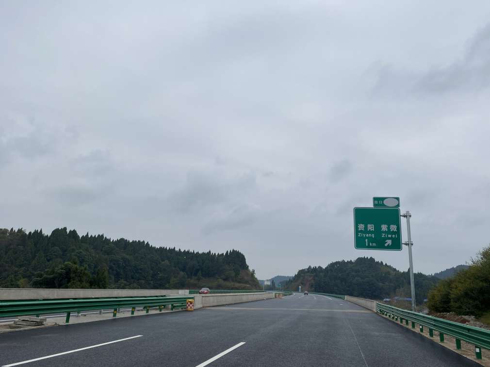 紫微收费站位于雁江区保和镇晏家坝附近,离老城区约30分钟车程。从紫微收费站继续前行20余分钟,便是清泉枢纽互通,也是成资渝高速与老成渝高速交汇的地方。清泉枢纽互通是成资渝全线最大的枢纽互通,工程上跨G76厦蓉高速6座桥梁、成资渝高速1座匝道桥,工期紧、任务重,11月中旬才完成了匝道桥脚手架拆除以及路面沥青的铺筑。