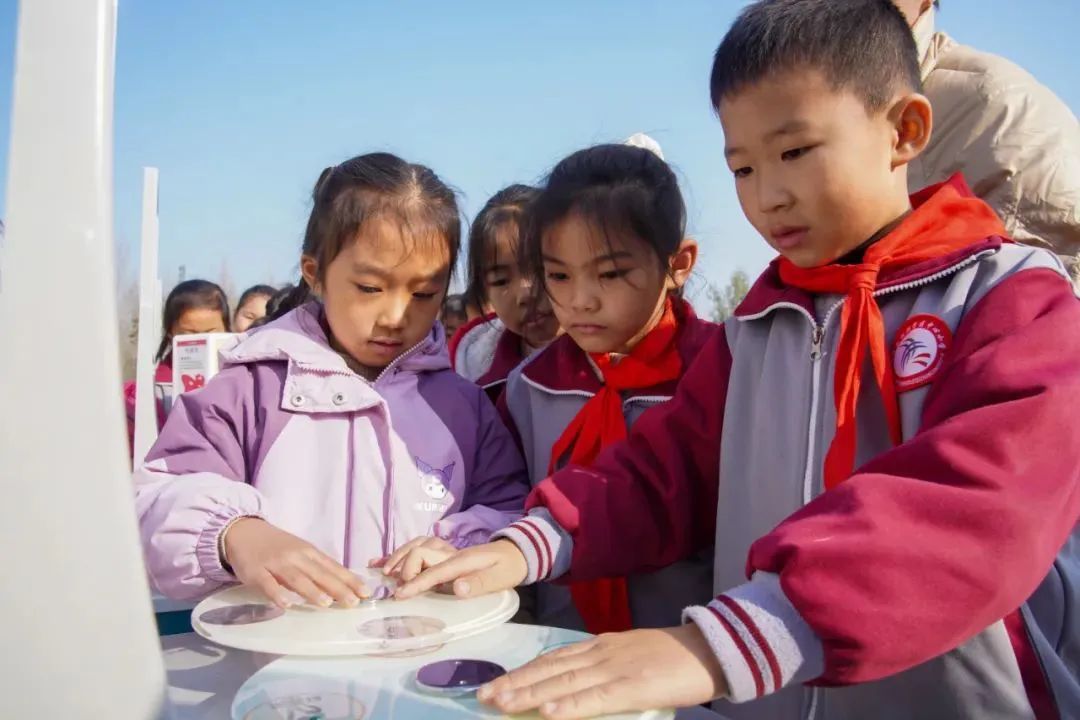 2023年11月14日,山东省淄博市高青县田镇学区中心小学学生们在观看科技节放飞活动。通讯员 张维堂 摄
