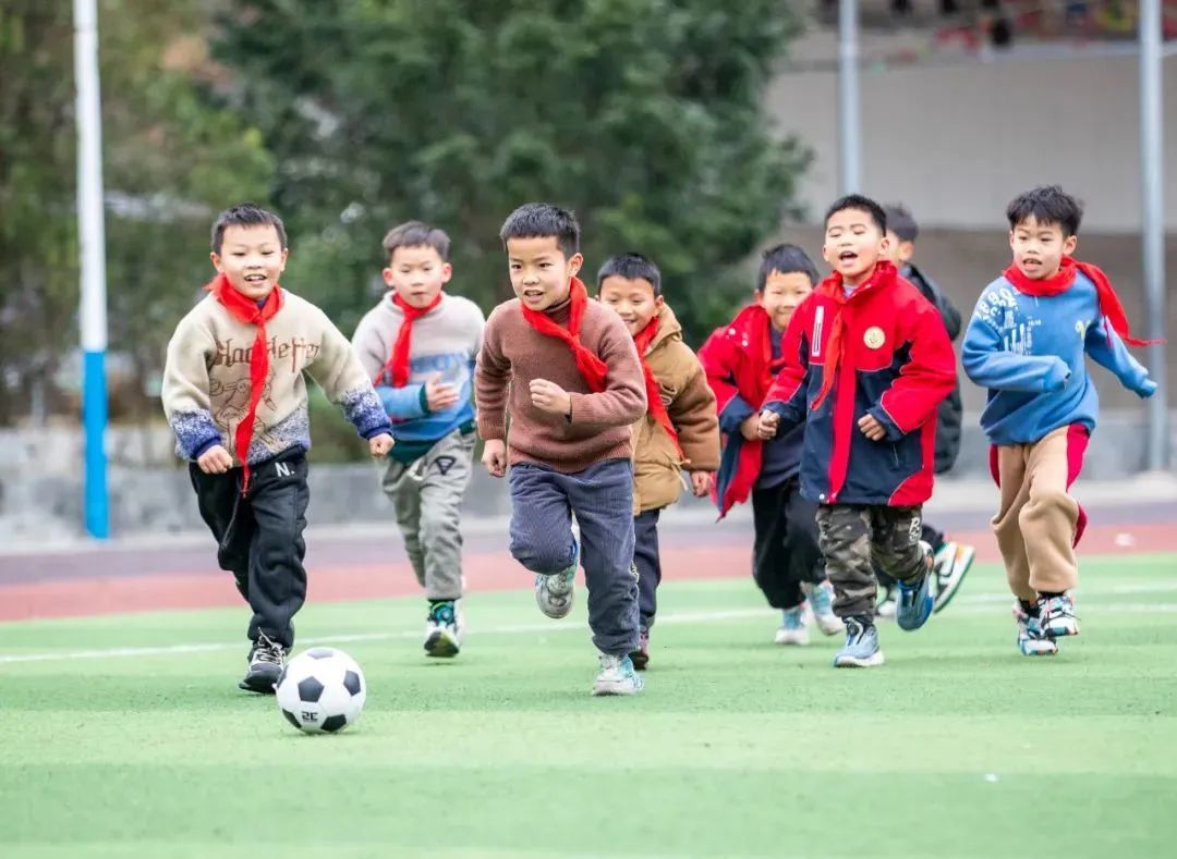 2024年2月28日,贵州省从江县刚边壮族乡中心小学的学生在踢足球。通讯员 罗京来 摄