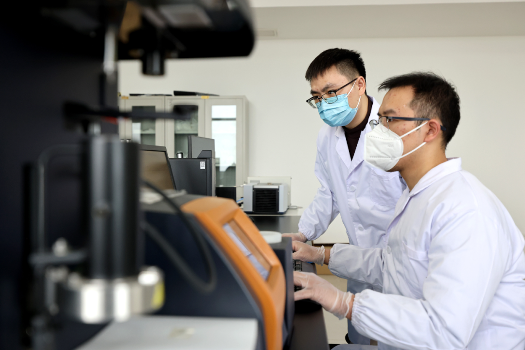 2023年12月26日,两名硕士研究生在一起分析生物降解材料相关数据。通讯员 吉喆 摄
