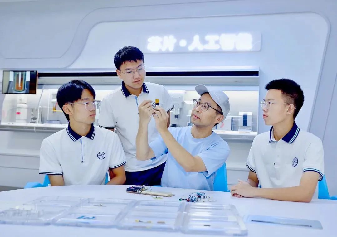 2023年10月17日,在浙江省温州市第八高级中学芯片实验室里,专业老师指导学生制作芯片。通讯员 刘吉利 摄