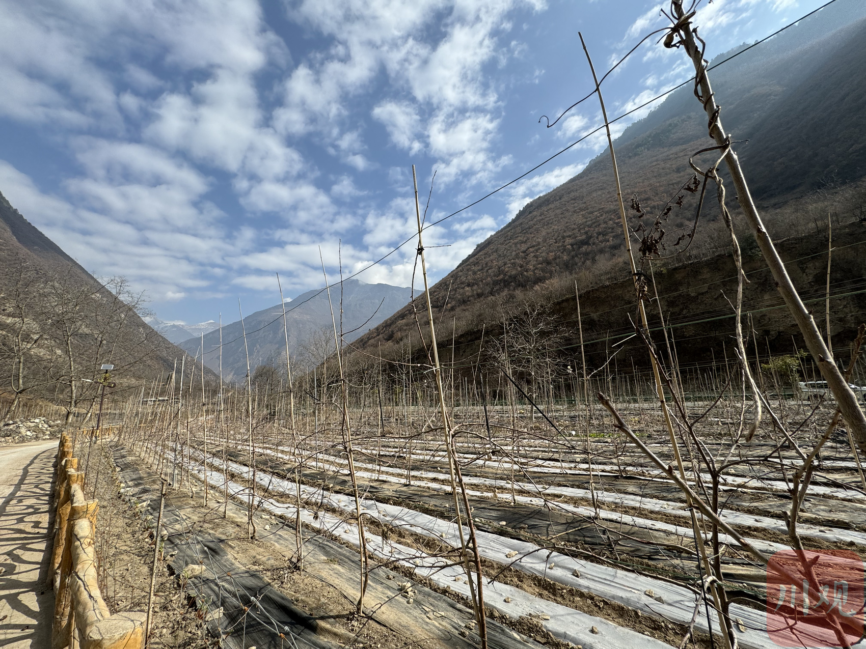3月9日,位于九寨沟县白河乡太平村二组的金猴果业农旅融合园里,地面上一排排的苹果树抽条冒芽,村民们忙着施肥喷药、耕地点油菜。