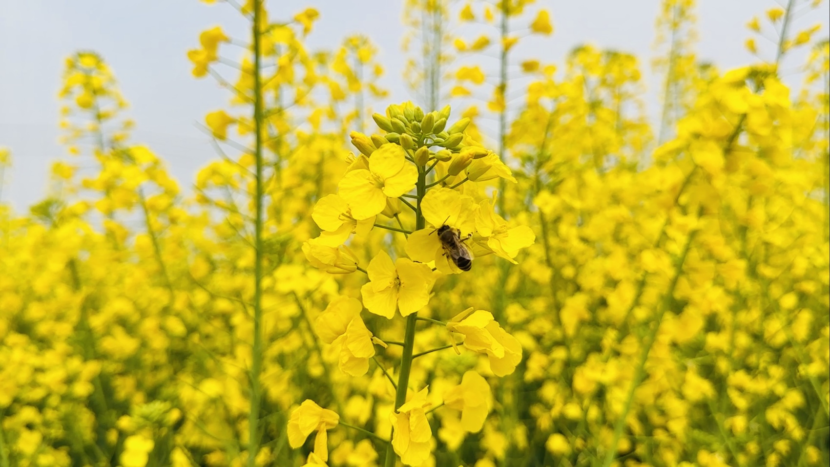 在这场蜂与花之“恋”中,蜜蜂获得了花蜜、花粉等食物,油菜得到高成功率的授粉,实现了“双赢”,可谓是自然选择下的“双向奔赴”。