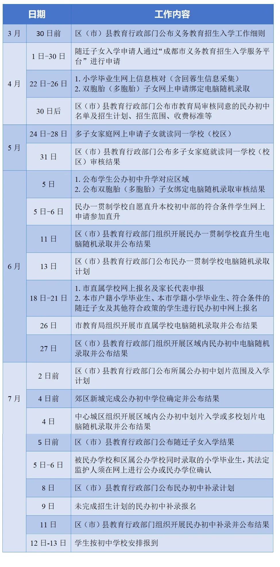 1.成都市小学毕业生:4月22日-26日,在“入学平台”进行信息核对;回蓉学生进行信息采集。