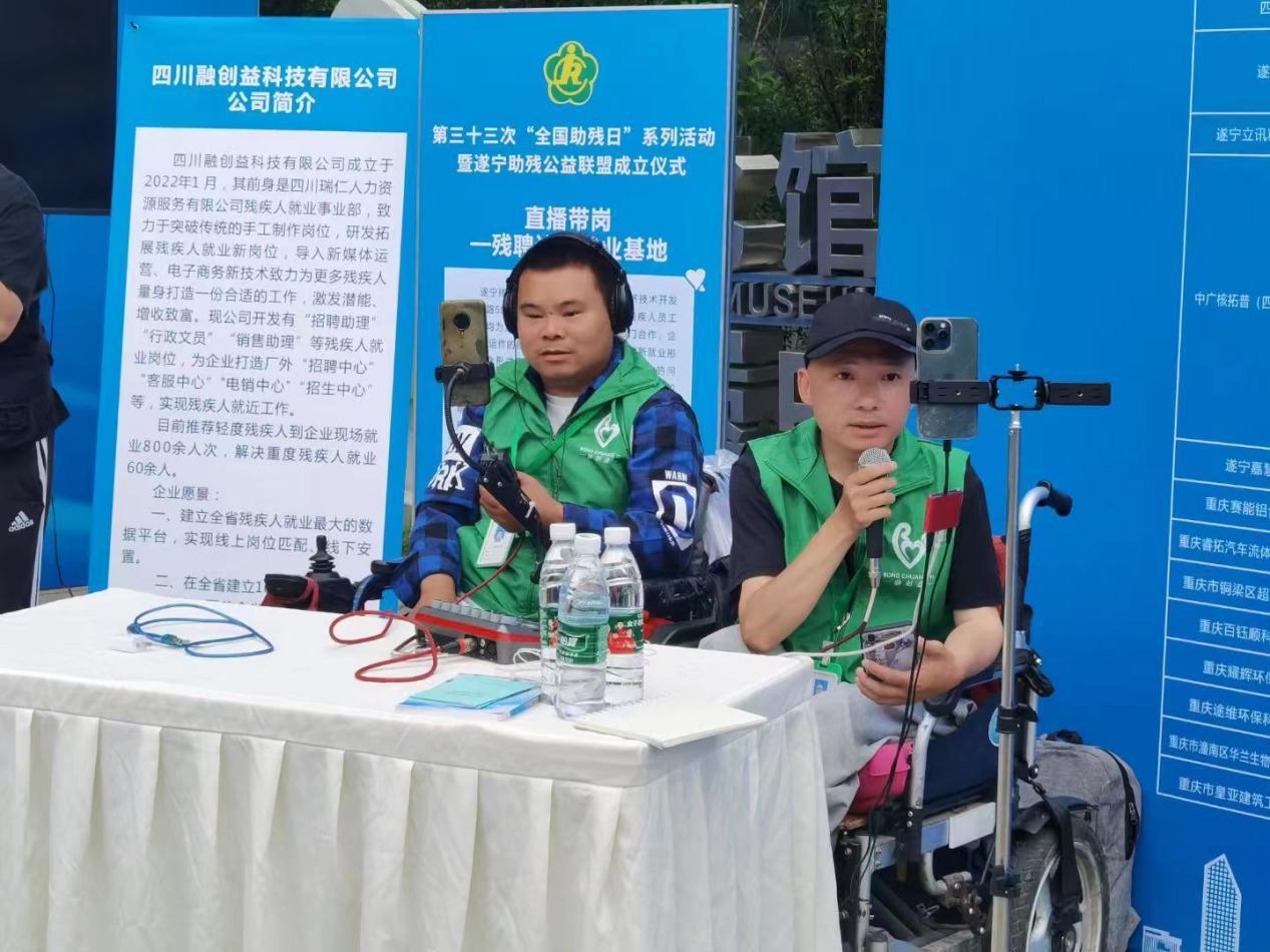 漆拯吾(右)与姚小军在遂宁助残公益联盟成立活动中直播带岗