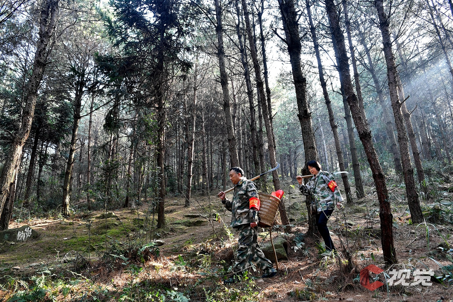 3月11日早上8时许,在广安市前锋区梭石板管护站,护林员方代金和妻子谌贵淑像往常一样,吃过早饭,穿上工服,扛着砍刀,开始了一天的巡山护林工作。这样的巡护工作,夫妻俩坚守了21年。