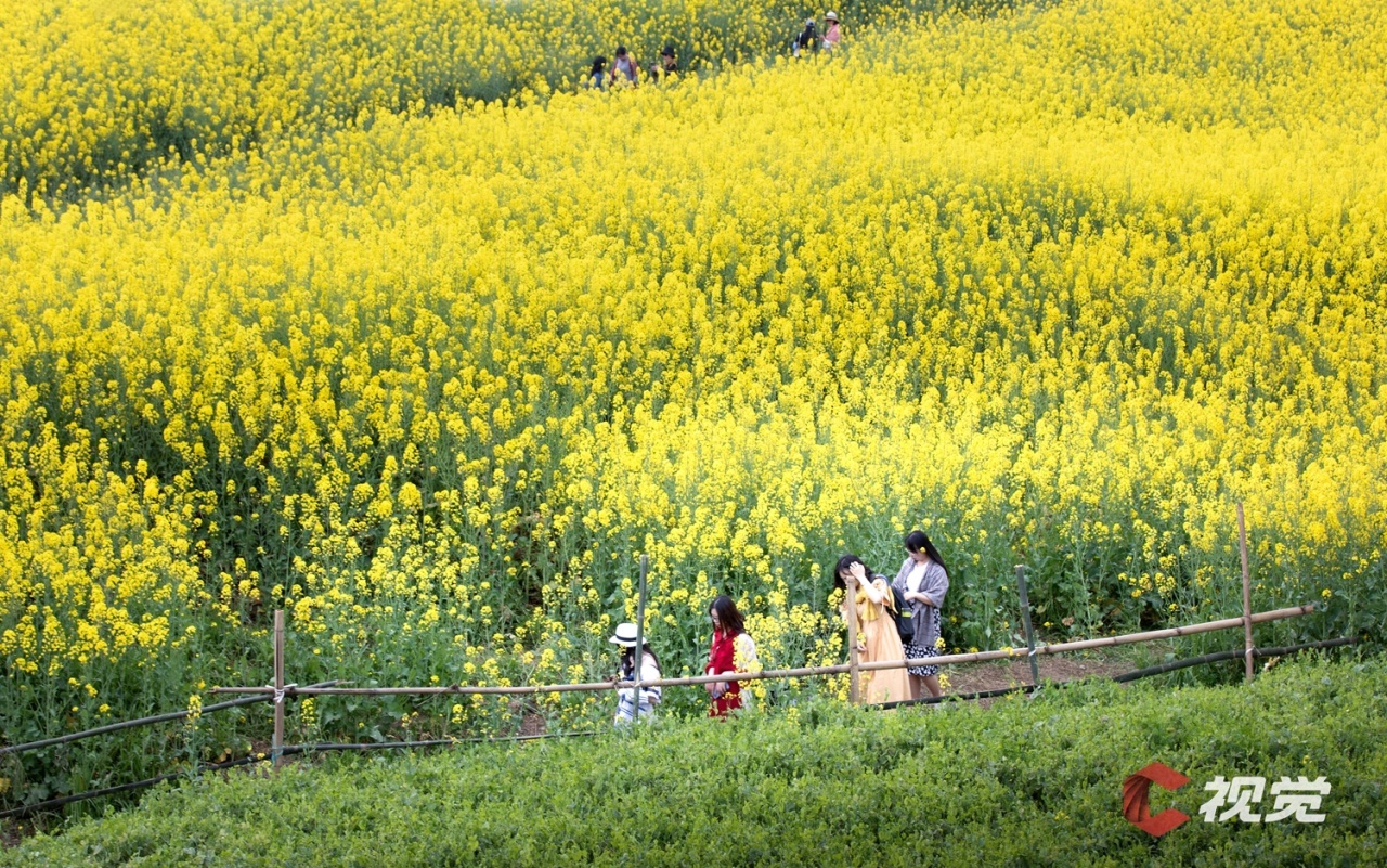作为绵阳市涪城区“五朵金花”之一的杨家镇油菜花次第绽放,抬眼远眺,满目金黄花海,驻足观赏,花香沁人心脾。三五成群的游客结伴而行,穿梭于花海中,尽情享受美好春光。