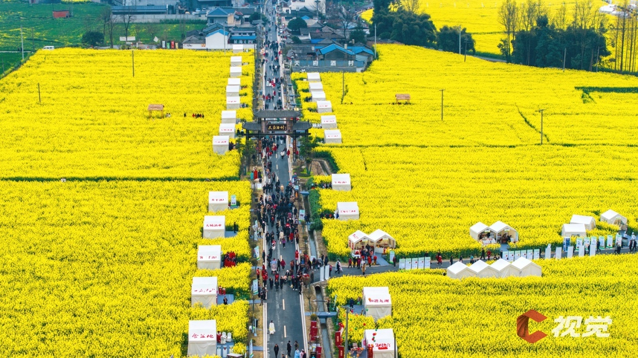 近日,作为第110届糖酒会展城融合活动之一的“过完春节过春糖·崇州天府酒村集市”在成都崇州市隆兴镇梁景村启幕。活动结合崇州自驾赏花季,以粮为基、以花为媒、以酒会友,开展花田品酒、田韵乡情等活动。众多游客迎着花香赶“集”,尽享春日好时光。