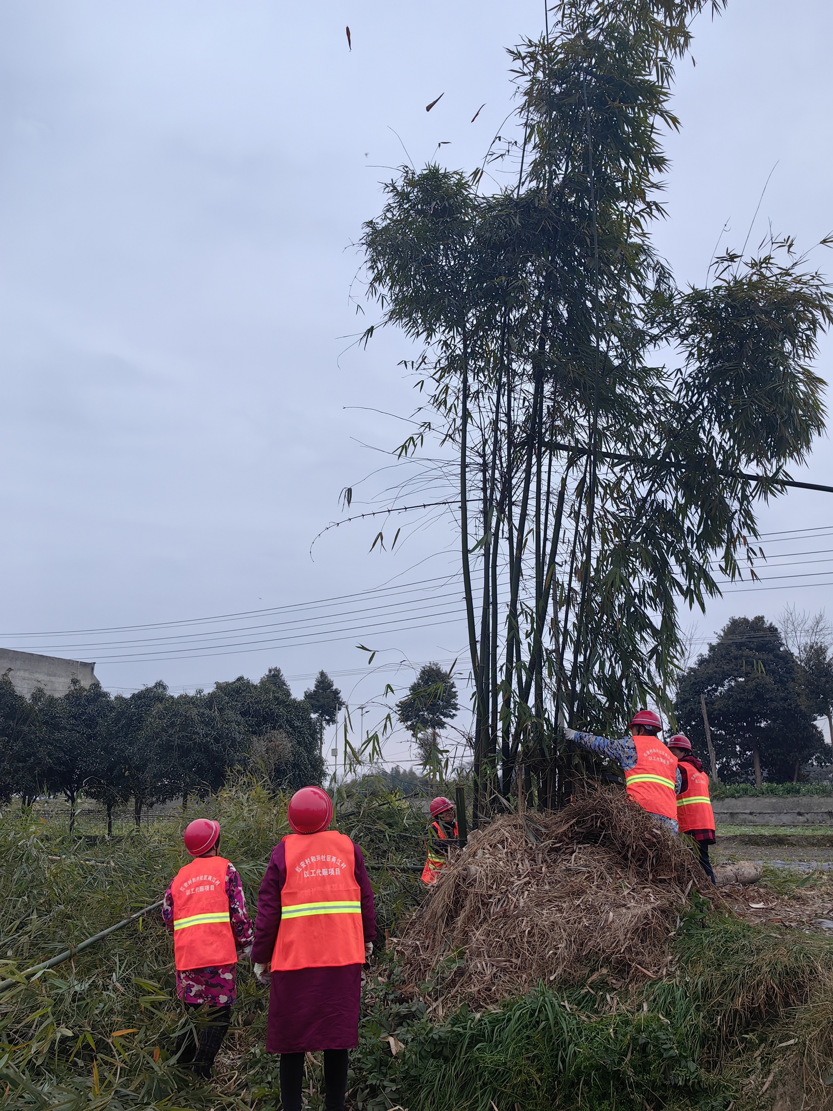 参加以工代赈项目的村民正在清理植被为渠道施工做准备