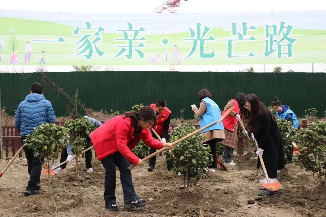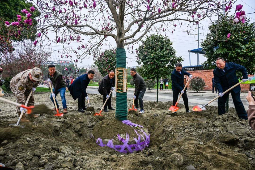 3月12日上午,成都市温江区天府街道“一家亲·光芒路”植树添绿主题活动举行。来自企业、学校、社区的数百名志愿者汇聚在温江盛江路,共同“植”下对城市环境品质提升的殷切期待。