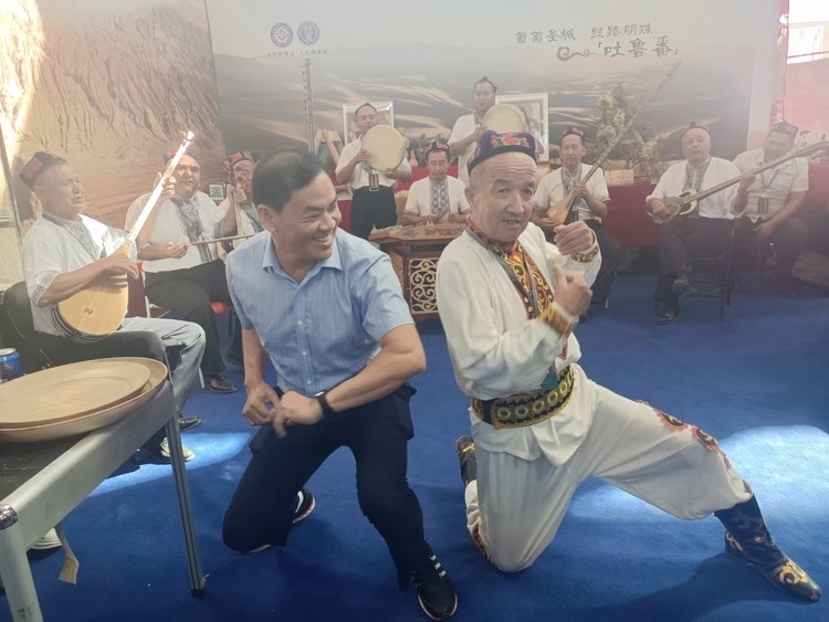 随着技艺日益精进,吐尔逊开始在当地婚礼、节庆活动中展示纳孜库姆的魅力,并逐渐将表演的舞台拓展至吐鲁番市、乌鲁木齐市等地。多年的演出经历让他深刻体会到,纳孜库姆作为非遗文化,其传承与发展需要更多人参与。他培养了多名学徒,26岁的米吉提·亚森从事装修工作之余,热衷于学习纳孜库姆,“吐尔逊老师不仅教我们跳舞,生活中有困难也会帮我们,私下里我们更像是朋友。”