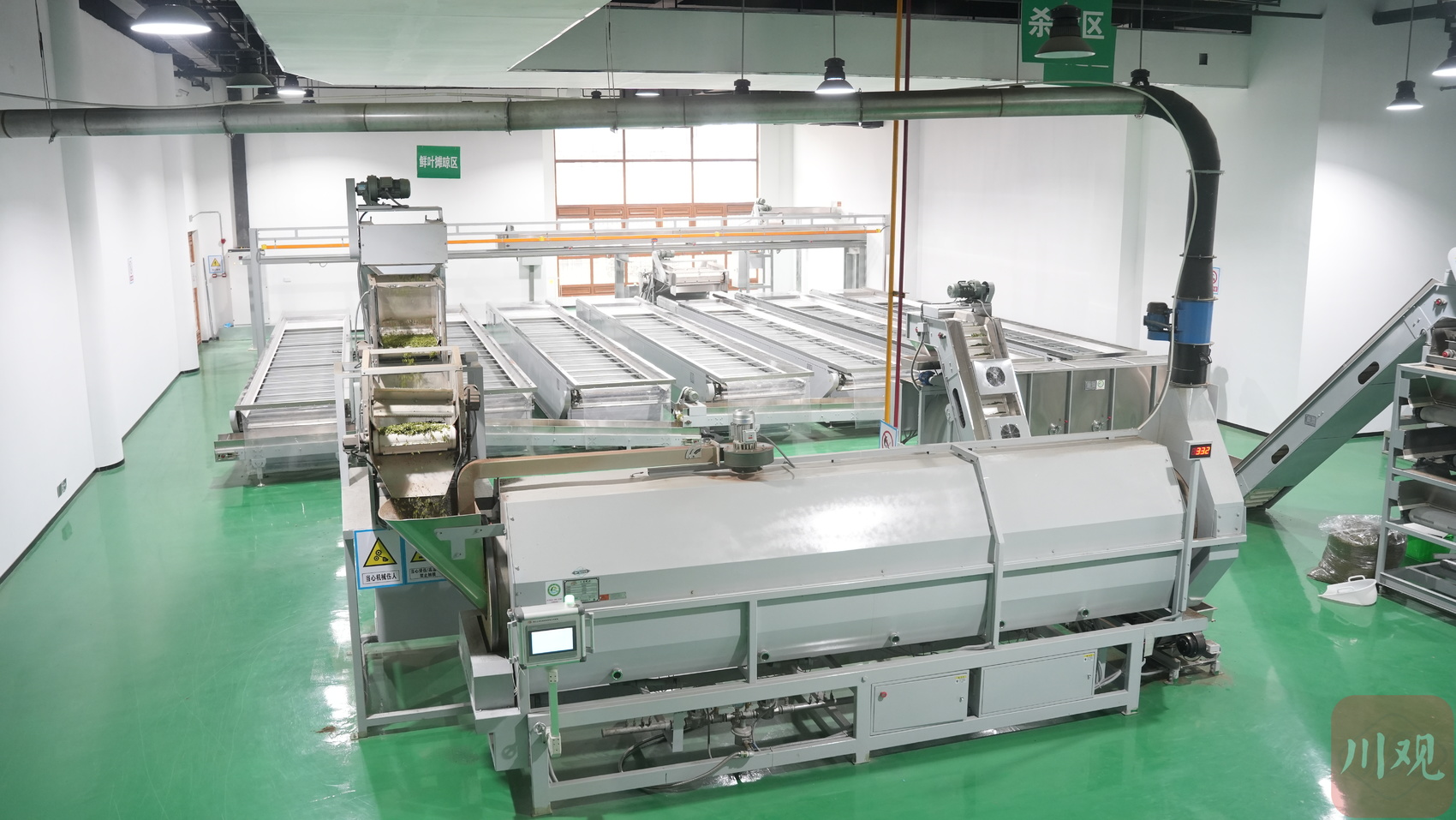 园区业态规划分为商业运营部分和生产加工车间。在生产加工车间内,智能化设备正按照既定程序和参数有条不紊地进行摊晾、杀青、选青等工序。与传统茶叶生产车间不同,数字化生产线让生产效率更高、茶叶清洁度更好、品质更稳定,不仅节约了人工成本,还能更好满足对外销售需求。目前,初制生产线每天可生产11000斤鲜叶、精制生产线每天可生产10吨以上毛茶。