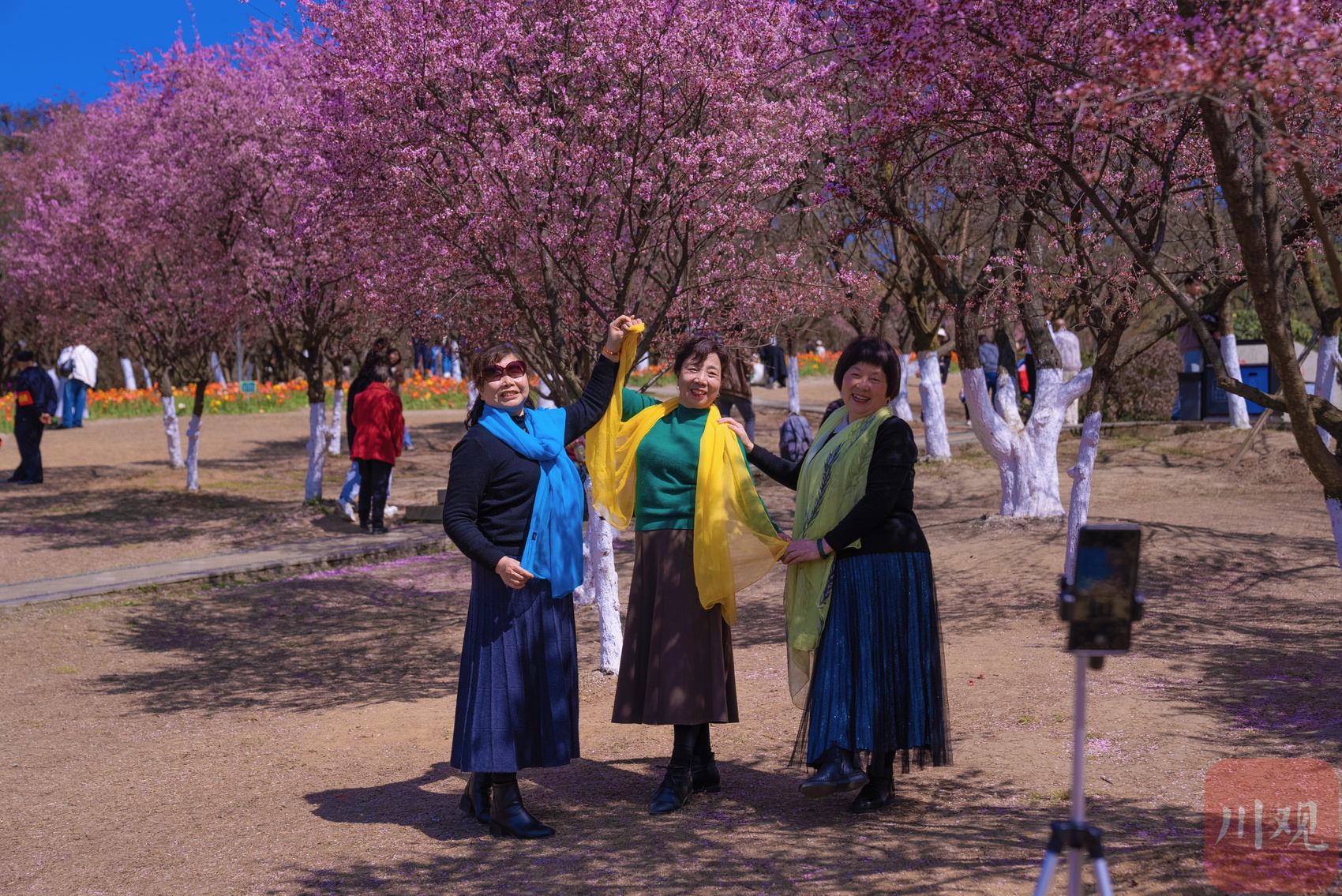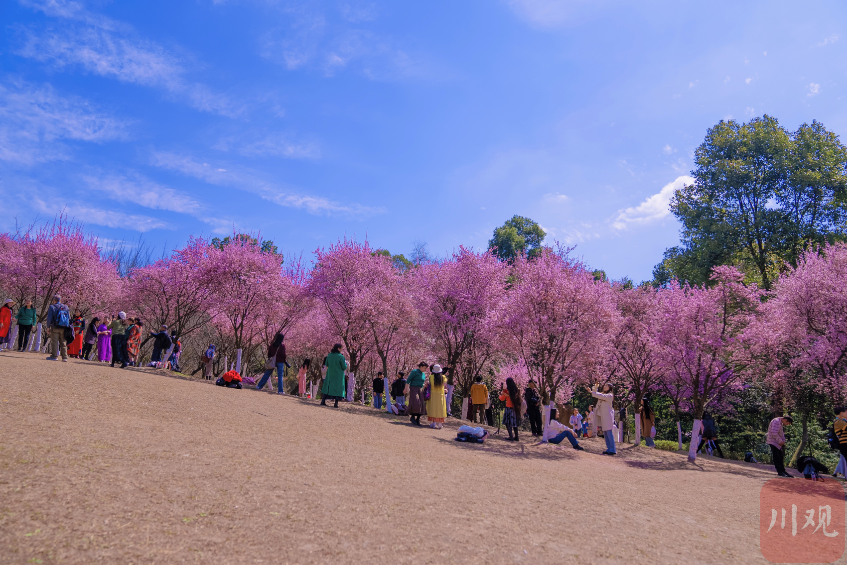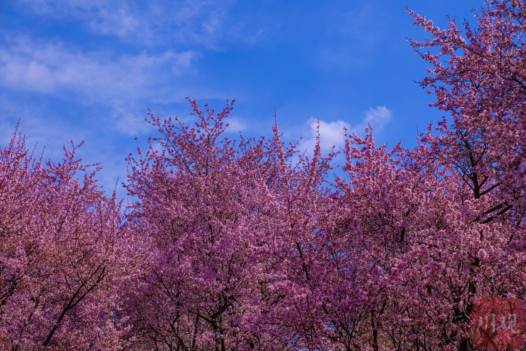 3月13日,成都植物园内盛开的美人梅在蓝天白云映衬下显得更加娇艳动人。