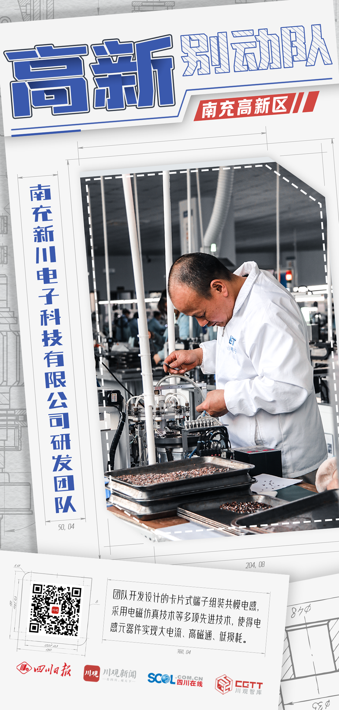 “客户对新产品还满意吗?”这是新产品量产以来,南充新川电子科技公司研发团队负责人周俊与公司副总经理、研发团队副组长史兰华说的最多的一句话。3月13日,在科研人员的带领下,记者走进卡片式端子组装共模电感元件的生产研发现场,感受该团队开展科技攻关的热烈氛围。