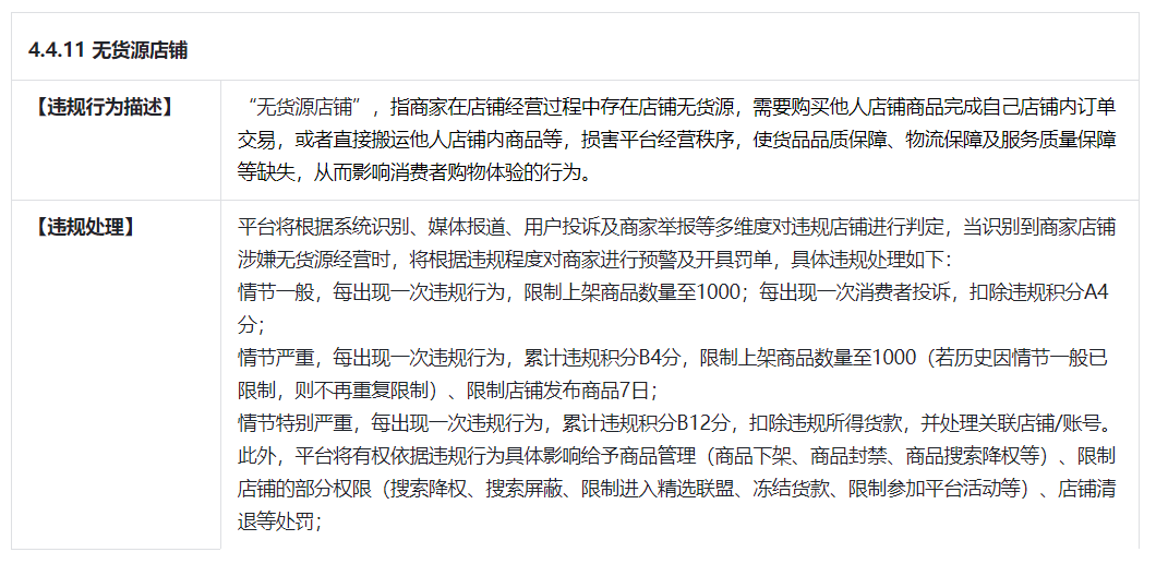 此外,淘宝、京东等平台也均已加强对“无货源”的处罚规则。
