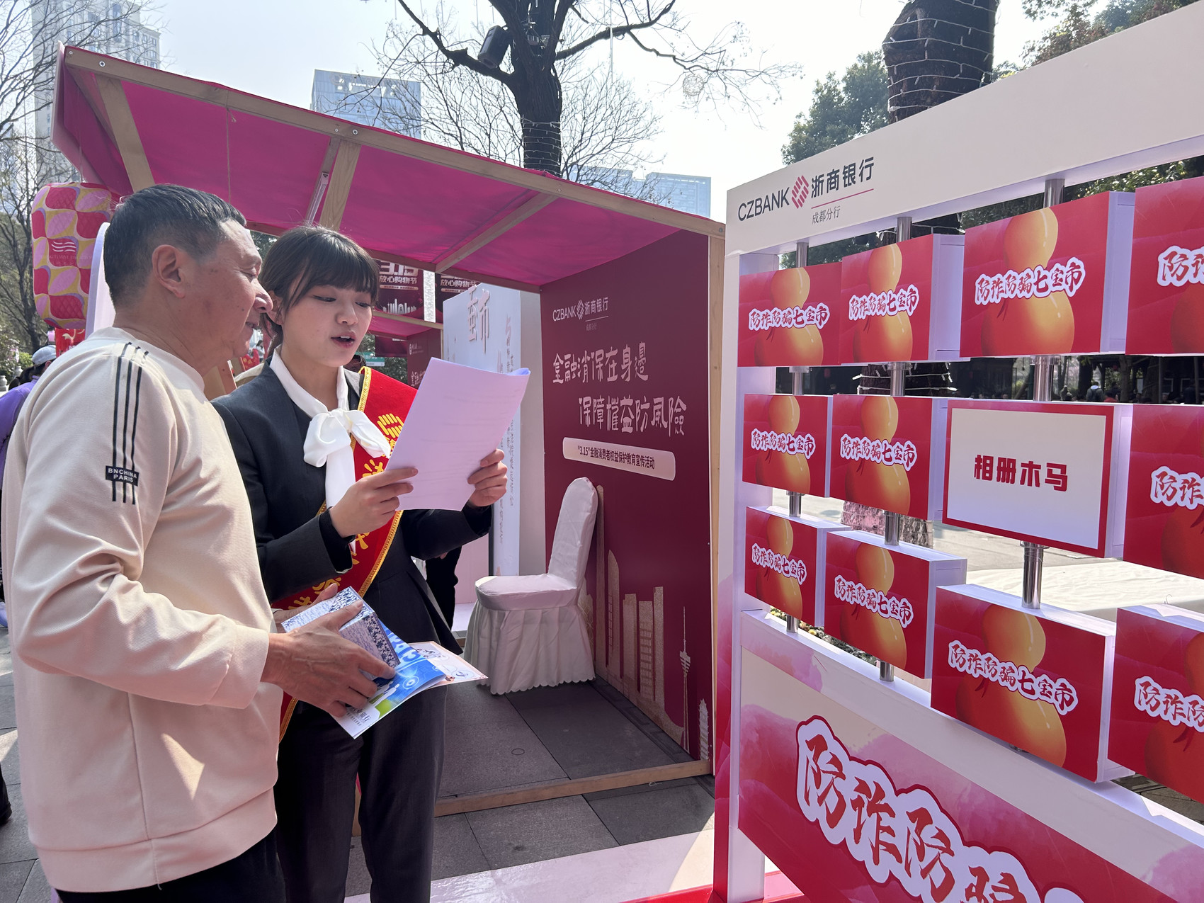 浙商银行成都分行作为活动参与方,积极响应、主动作为,通过设置金融咨询台、安装反诈防骗主题互动游戏装置,以寓教于乐的方式开展金融知识普及,引来不少群众驻足与点赞。