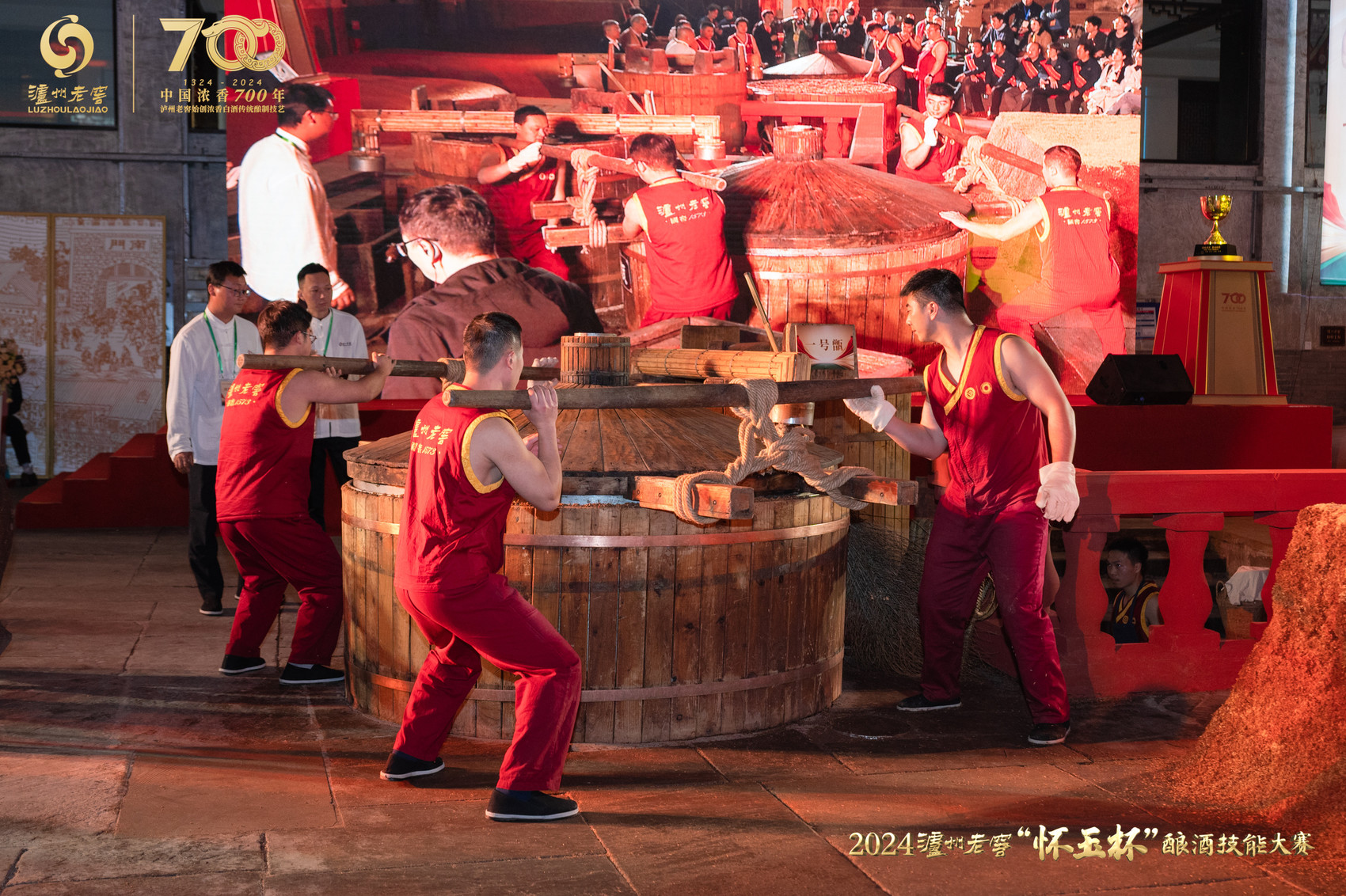 2024泸州老窖“怀玉杯”酿酒技能大赛在持续451年酿造生香的1573国宝窖池群内精彩上演。