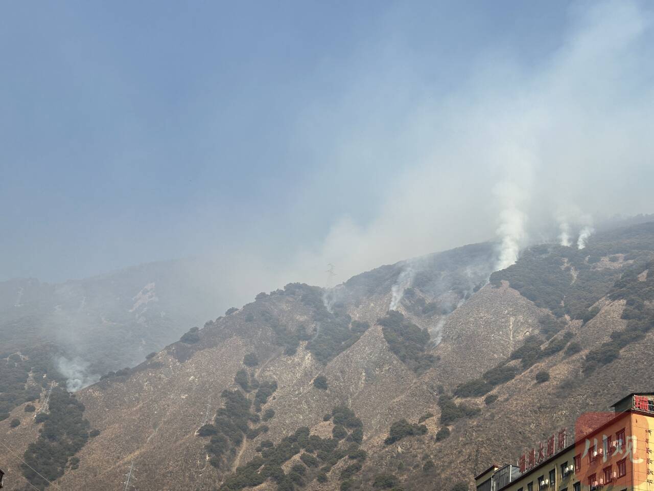 记者在雅江县城看到,附近山头存在部分着烟点,但无明火。游飞 摄