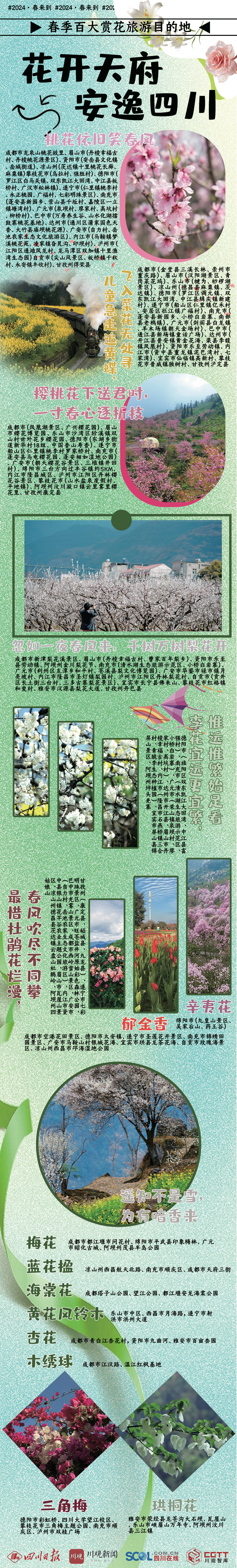 天府处处皆美丽,百大赏花目的地; 争奇斗艳春光好,四川巴适又安逸!