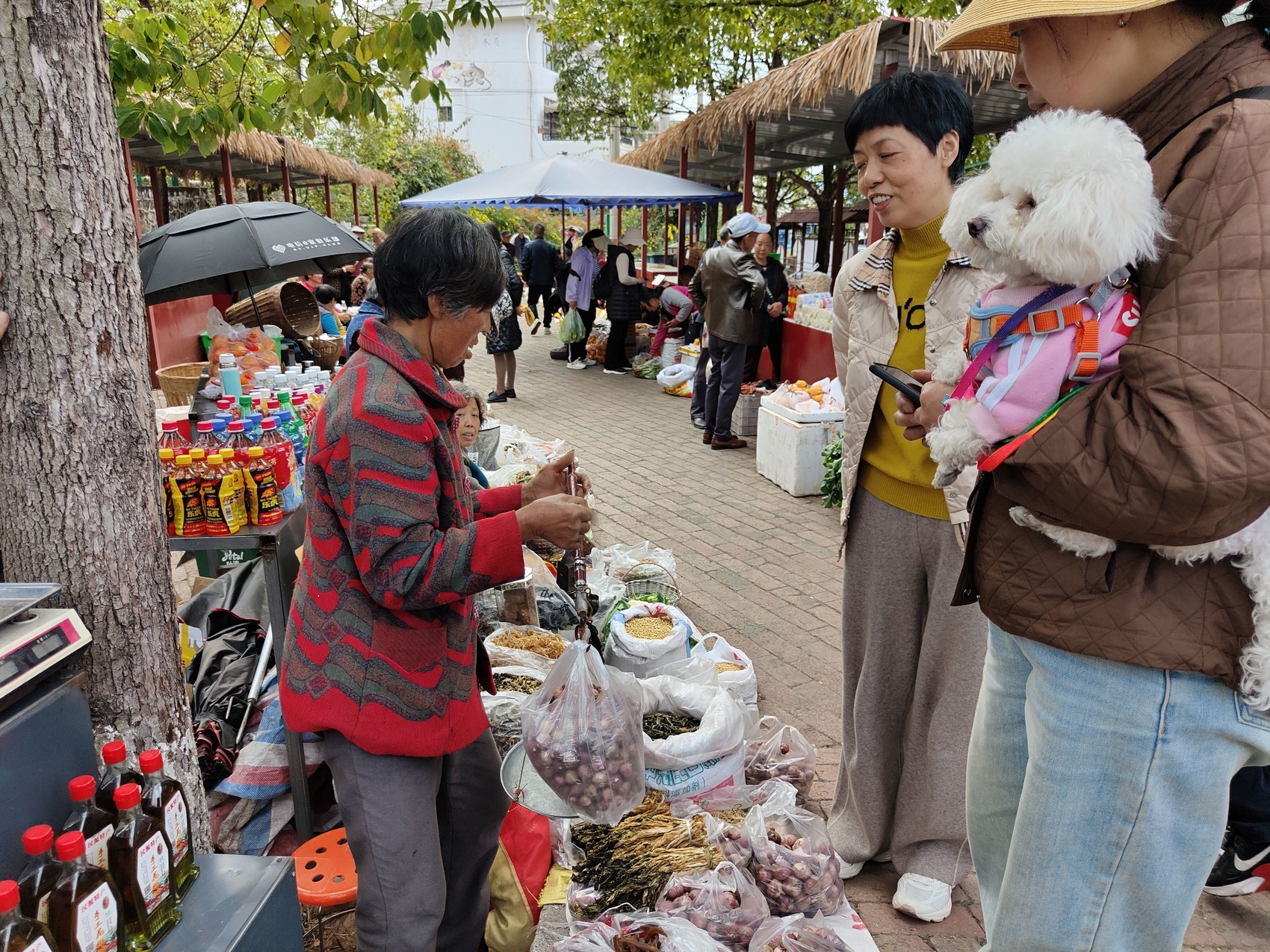 “汉源大蒜品质好,我们从荥经过来赏花,顺便买一些带回去。”荥经来的游客张女士在一个售卖农产品的临时售卖点,选购了一大袋独头蒜,把汉源的味道带回家。