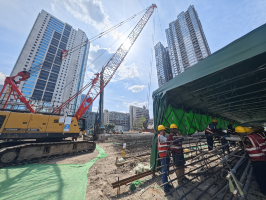 挖掘机、打桩机隆隆作响,起吊车挥舞着“长臂”忙碌,工人们正在绑扎钢筋条……3月18日,走进位于成都市青羊区西御河街道正府街的成都市青羊金融科技产业园施工现场,看到一片火热的施工景象。这个2023年12月动工的项目,由两座超高层办公塔楼构成“双子塔“结构,T1塔楼地上37层,建筑高度199.99米,T2塔楼地上32层、地下室4层,建筑高度为179.99米,预计2027年完工。