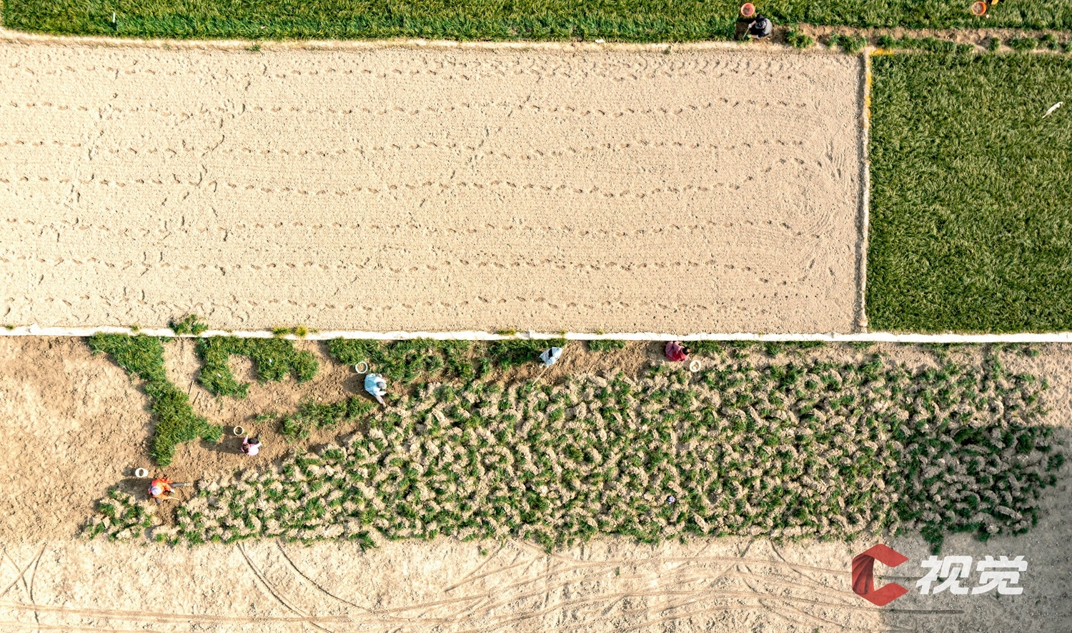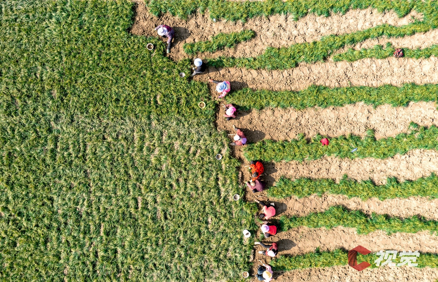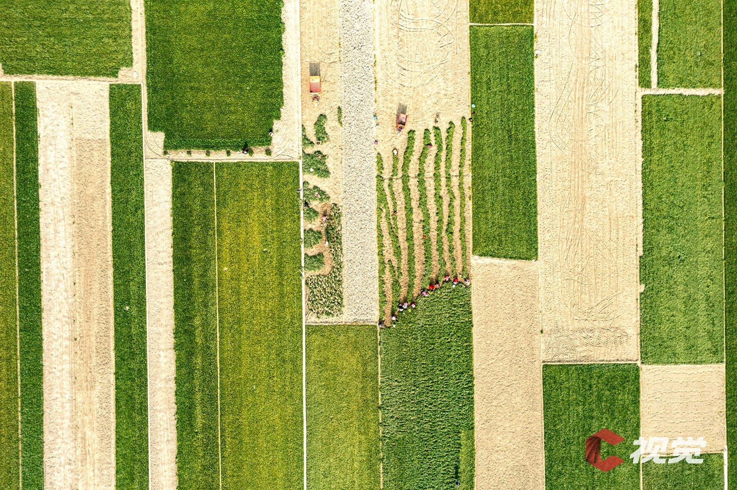 沃野千里地藏宝,绿意葱茏麦冬翠。采挖果实一串串,捡拾丰收笑盈盈。