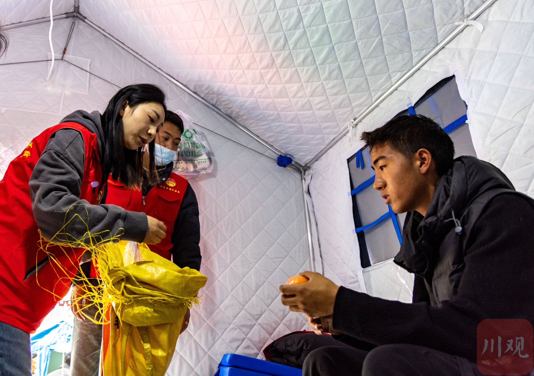 “我们负责把送来的物资搬下车,再分别搬到要转运车辆上。”建英是呷拉镇双语幼儿园的教师,她告诉川观新闻记者,3月16日上午,他们三姐弟和爸爸妈妈从呷拉镇脚泥堡村的家中搬进安置点,在安置点,看着来往忙碌的工作人员,妹妹建春也觉得“坐不住”:“都是年轻人,我们应该帮着做点事。”