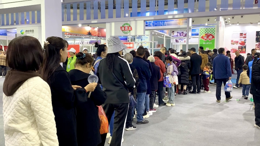 当天,泡博会预制菜主题馆内,各大参展商试吃台前都围满了人。工作人员熟练地将烤肠翻面、切断、装盘,分发给参观者。“外皮有嚼劲,肉香味比以前吃的烤肠浓一些。”排队近半小时后,王丽将裹满辣椒面的烤肠放进口中仔细品尝,并给出如此评价。