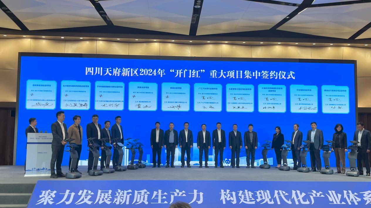 童文其(左七)参加四川天府新区2024年“开门红”重大项目集中签约。