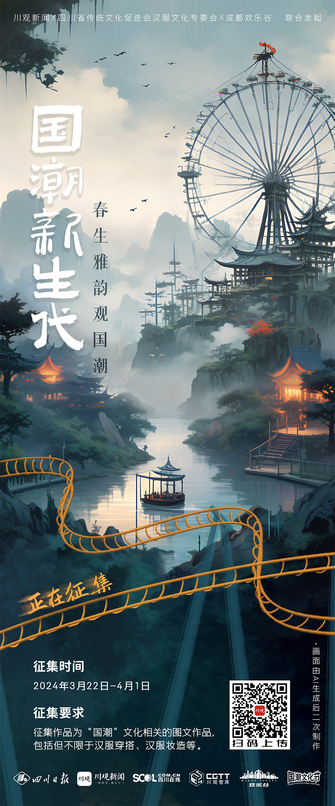 3月22日至4月1日,在川观新闻客户端“国潮新生代”活动页面上传您的“国潮”图文作品,包括但不限于汉服穿搭、汉服妆造等。