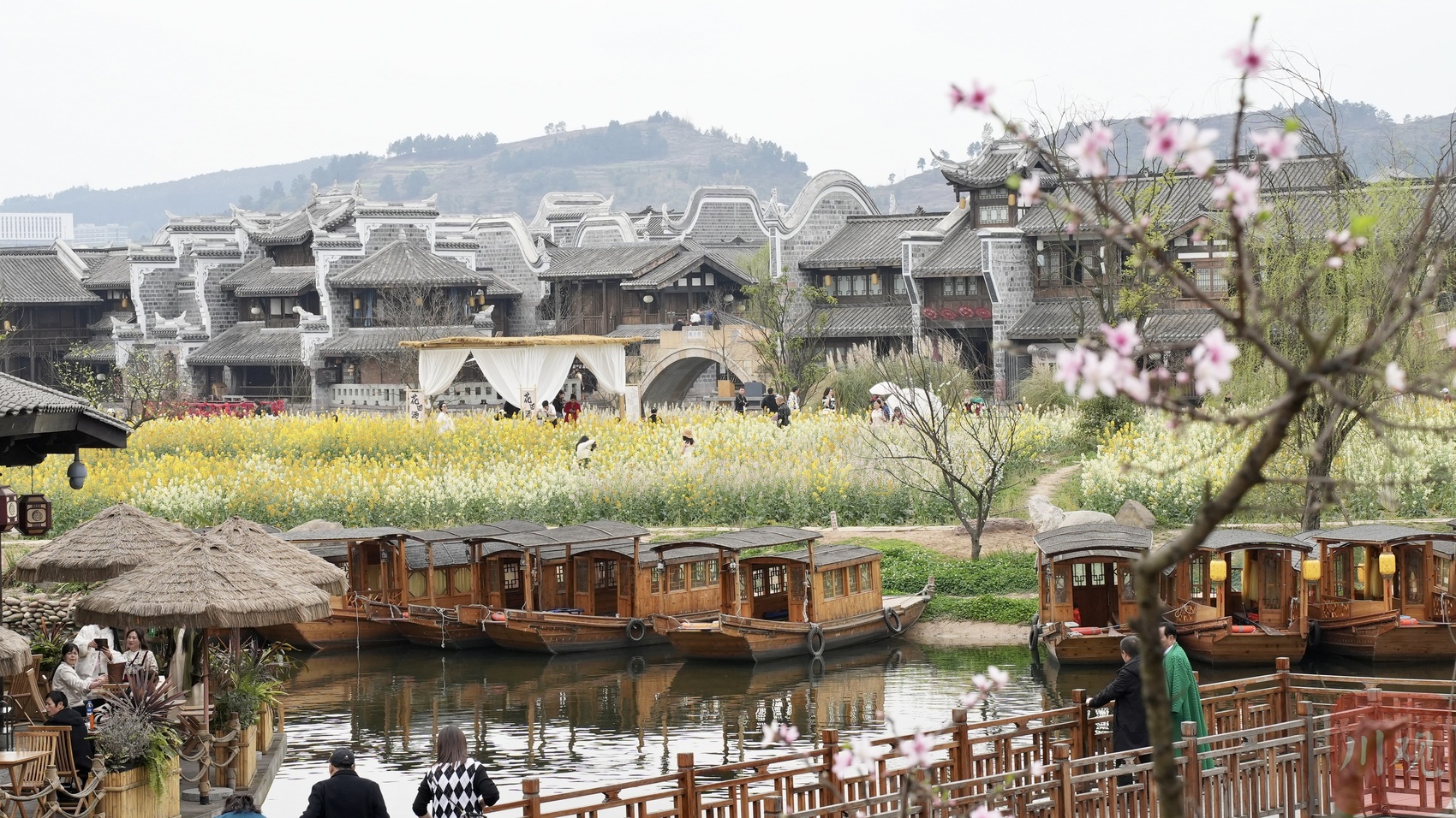 春天的李庄古镇,在诸多趣味体验中便能消磨一整天的时光,或置身花海与花儿近距离接触,或乘坐摇橹船远观油菜花海,或寻一茶馆边喝茶边赏花,或闲逛古镇的特色小店……