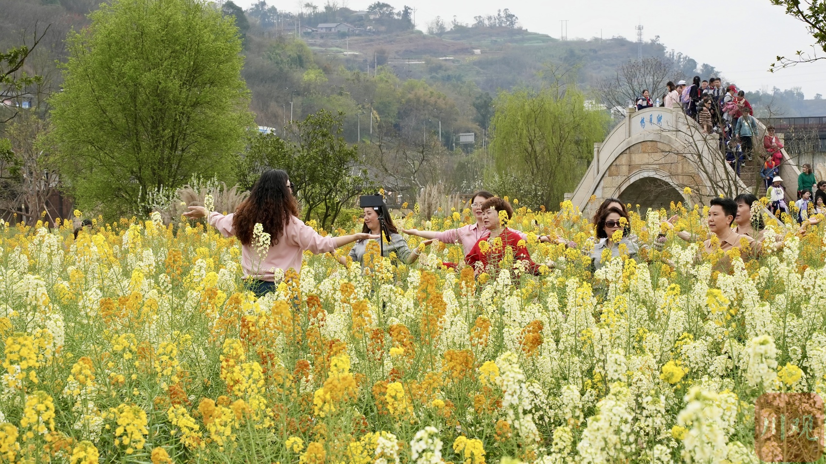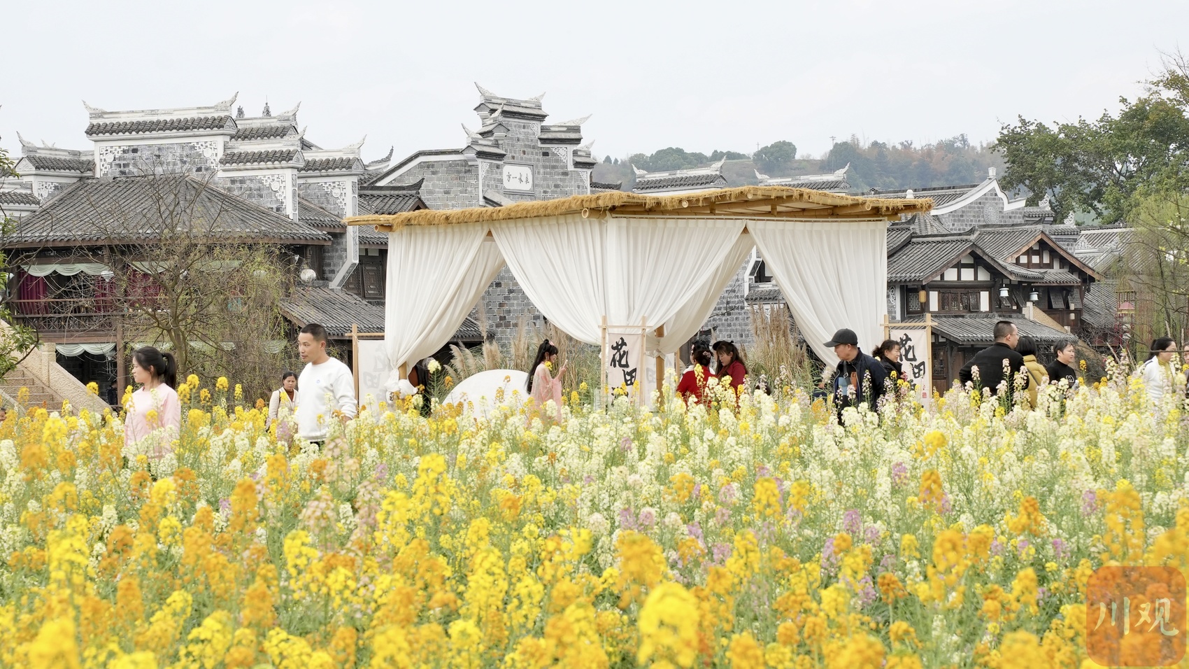 橘子金、嫩鹅黄、鸢尾紫、汉玉白…色彩缤纷的油菜花,为李庄古镇的春天添上了一抹别样的色彩。花田里沁人心脾的香味与浓烈的色彩,欢笑着拍照的游客,调和成了春日里靓丽的风景。在月亮田的小湖中,几只黑天鹅正水中嬉戏,似乎在欢迎着每一位到来的游客。