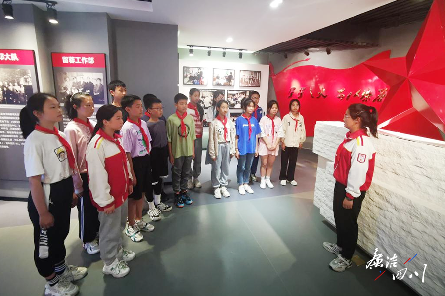 成都游击斗争史料馆“小小讲解员”正在向崇州市燎原小学学生讲解革命先辈们艰苦卓绝的斗争故事。