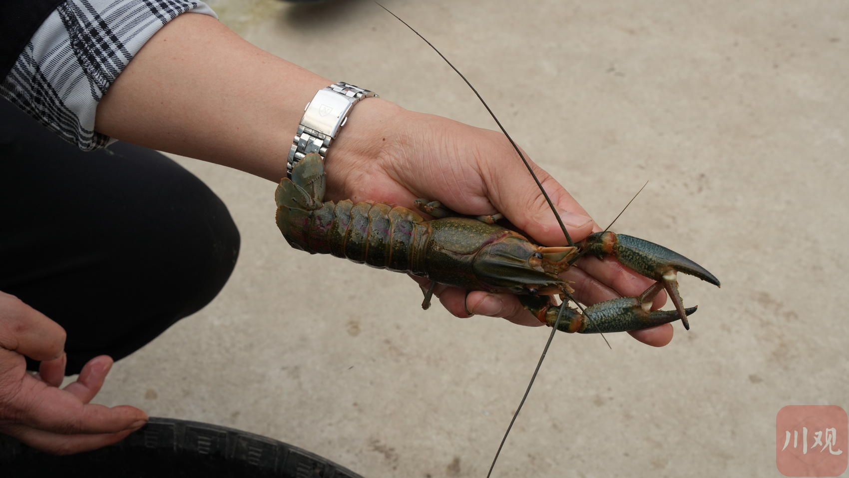记者从水塘里捏起一只澳洲龙虾,巴掌大小的澳洲龙虾颇有分量,身体在阳光下泛着漂亮的青光。3月,这里的澳洲龙虾体重已经有3两左右,已经满足上市条件,随时可以发往宜宾、泸州乃至成都、重庆等地。