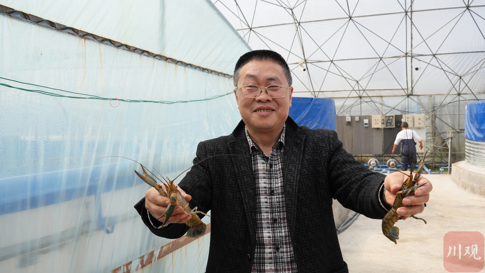 3月21日一早,宜宾市兴文县共乐镇新阳村,太阳刚刚爬上僰王山,曾明刚就已经在澳洲龙虾淡水养殖大棚里忙碌起来。