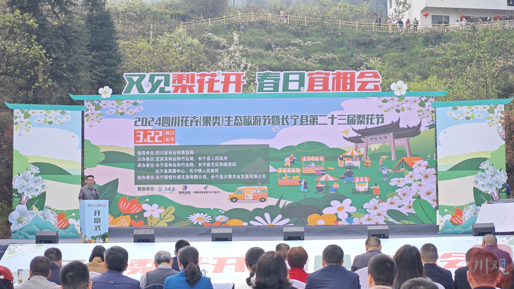 又见梨花开,春日宜相会。3月22日,2024四川花卉(果类)生态旅游节子活动暨长宁县第二十三届梨花节在全国农业旅游示范点、国家4A级旅游景区佛来山景区开幕。游人踏春出行,在花海中感受春天气象,体验乡土人情,共话乡村振兴。