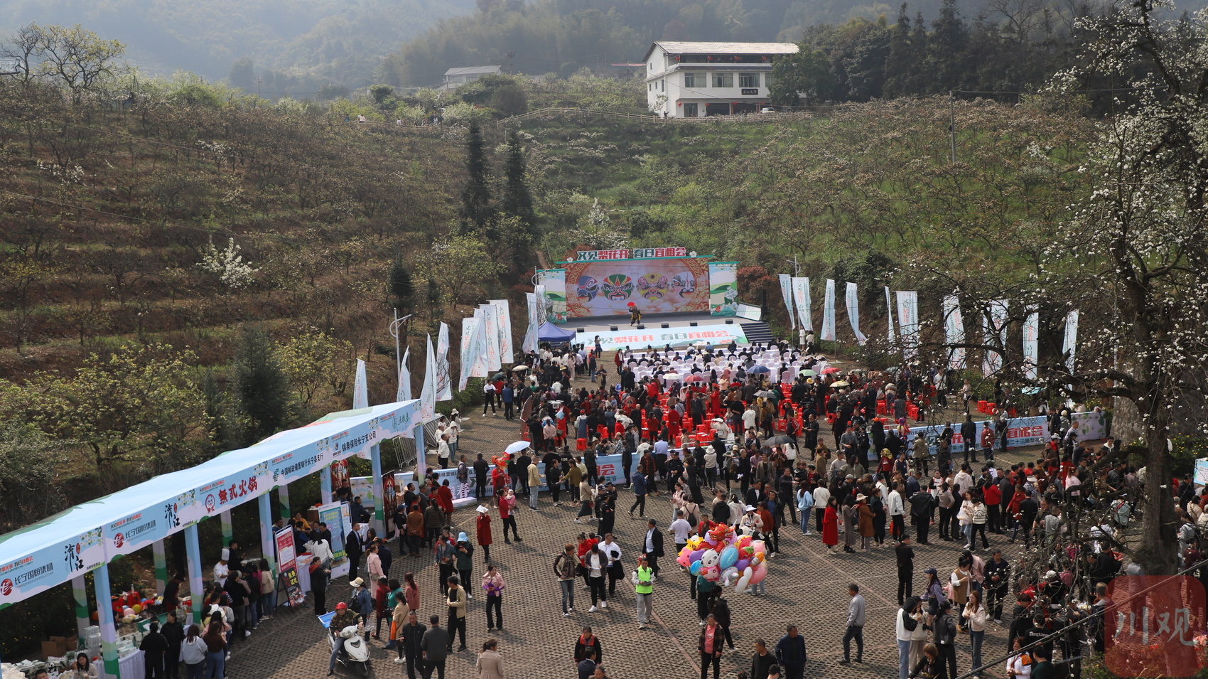 在佛来山上,放眼望去,白白的花朵如雪如玉,微风拂过,花枝迎风摇曳,淡淡的梨花香气四溢,令人沉醉。而舞台上,川剧、舞蹈、魔术……一个个精彩节目轮番登台,吸引了众多村民和游客的目光,现场游人如织。