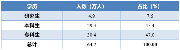 从毕业生生源地来看,省内生源毕业生51.8万人,占比80.1%;省外生源毕业生12.9万人,占比19.9%。